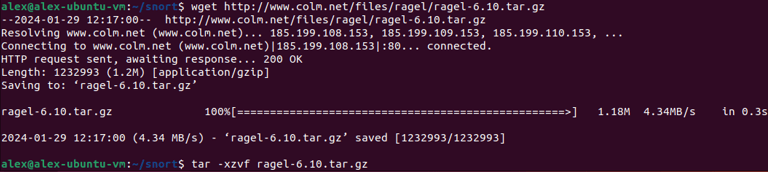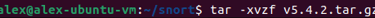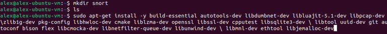Step 3. Downloaded Snort via Ubuntu. Created directory named "snort". Downloaded Snort prerequisites using the following commands:
