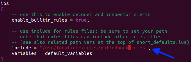 Step 14. Remodifying Snort's .conf file to point to Pulled Pork's Rules.