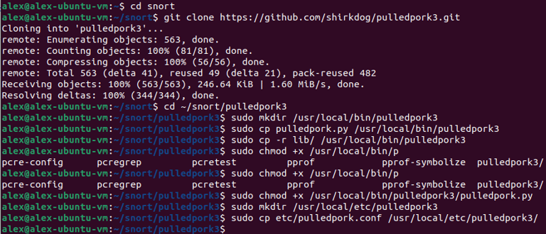 Step 12. Expanding Snort Rule Set. Accomplished by installing "Pulled Pork" which automatically grabs rules - verifying Pulled Pork is running.