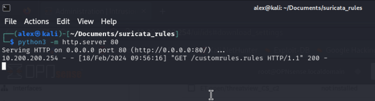 Creating a custom Suricata Alert, using Filezilla to send rules via SSH, utilizing Python to create a simple HTTP Web Server for OPNsense to download rules.