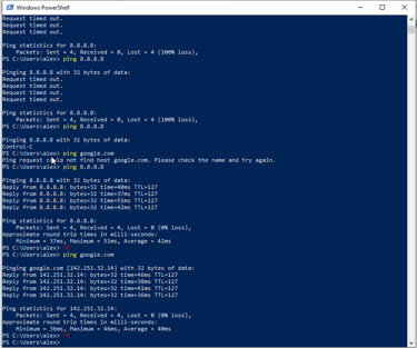 Troubleshooting connectivity issues, changing DNS server, looking through NAT & port forwarding rules until internet could be reached from Windows 10 Machine: