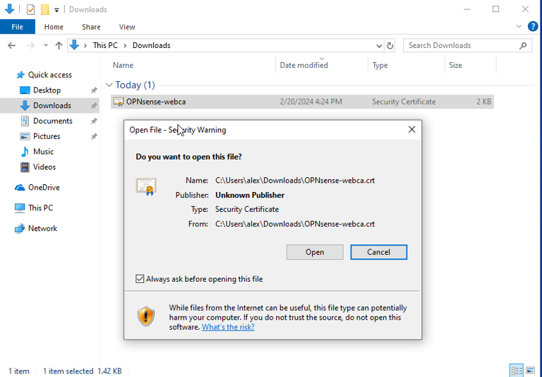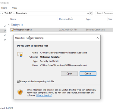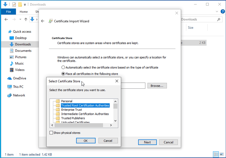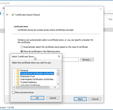 Downloading the Certificate & Importing it into the Trusted Root CA File on the Windows Client