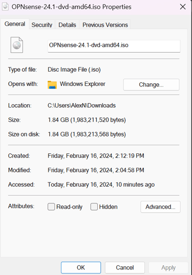 The .iso file is readily & directly available via OPNsense but is compressed within a .bzip file.