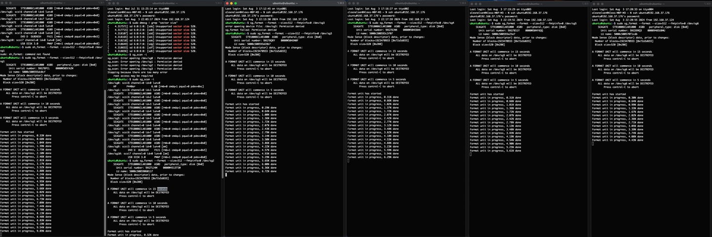 Once confirmed, I needed to proceed with reformatting these disks with the following commands: